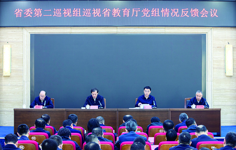 党组书记、厅长,省委教育工作委员会副书记张洪彬和党组领导班子进行会议反馈,会议传达了省委书记黄强在听取十二届省委第五轮巡视综合情况汇报时的讲话精神。张洪彬主持向领导班子反馈会议并作表态发言。